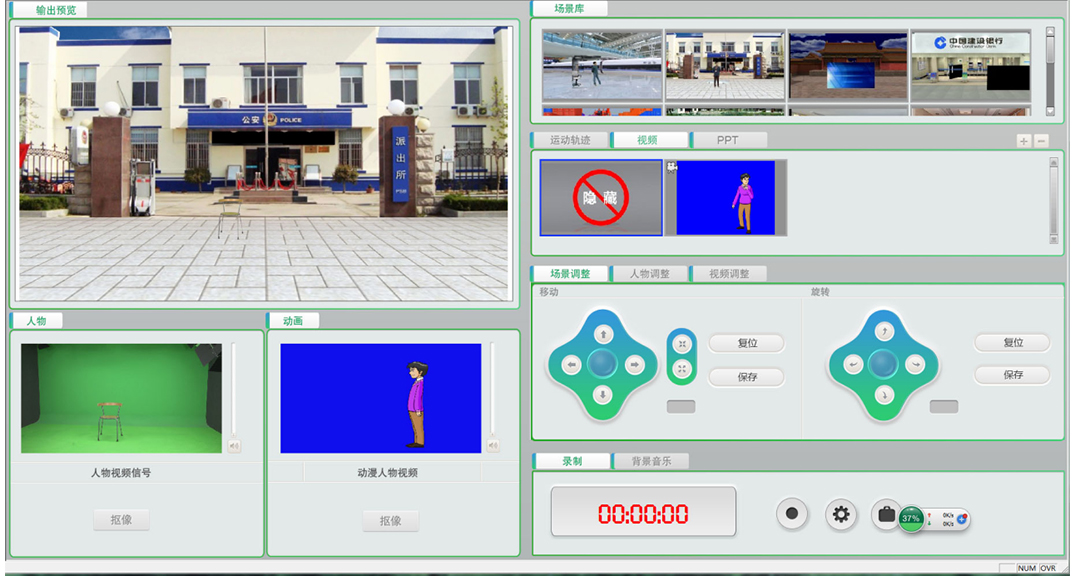 支持虚拟场景与多种视频素材合并。诚联 虚拟演播室系统提供多个实时视频信号输入窗口以及录制完成的视频媒体源信号输入窗口。除此之外,也提供场景覆盖模块,在虚拟场景中叠加图形文件,丰富虚拟场景。